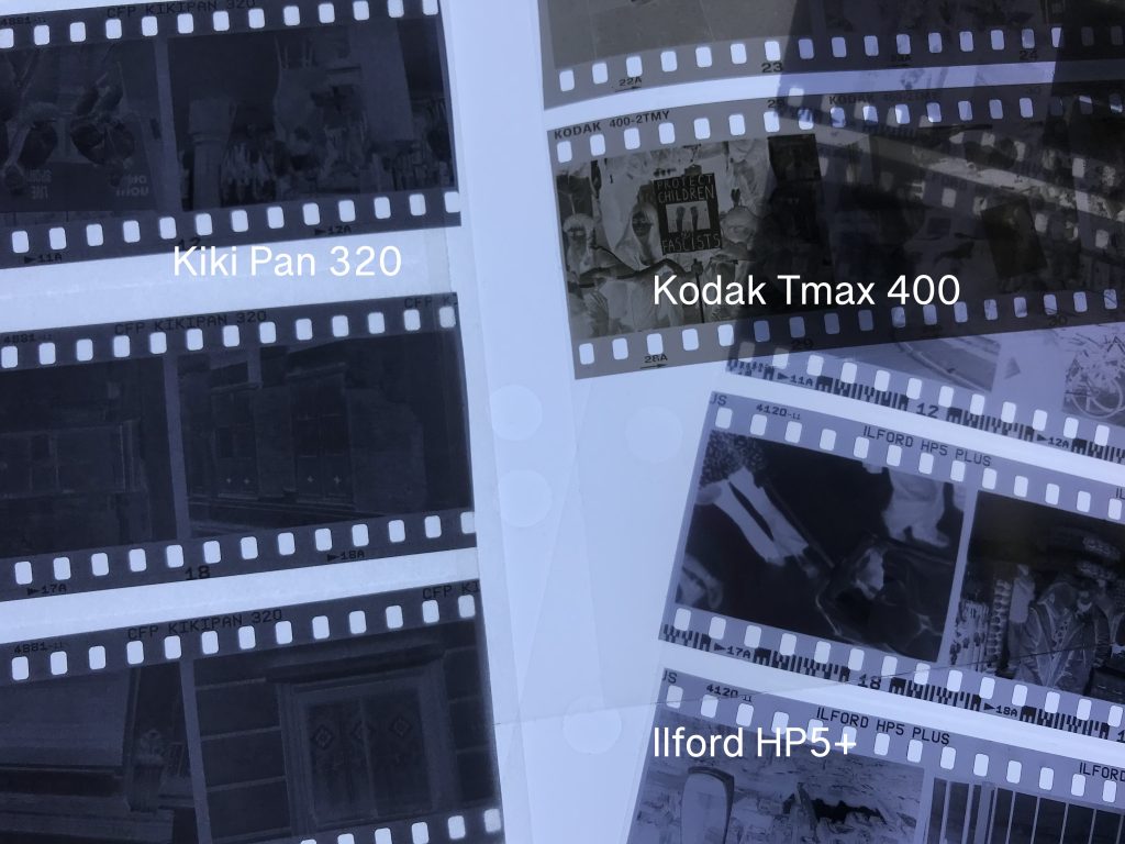 Here is a comparison with Kodak TMax and Ilford HP5. If you look closely at the rebate edges you can really see how much darker the film base is.